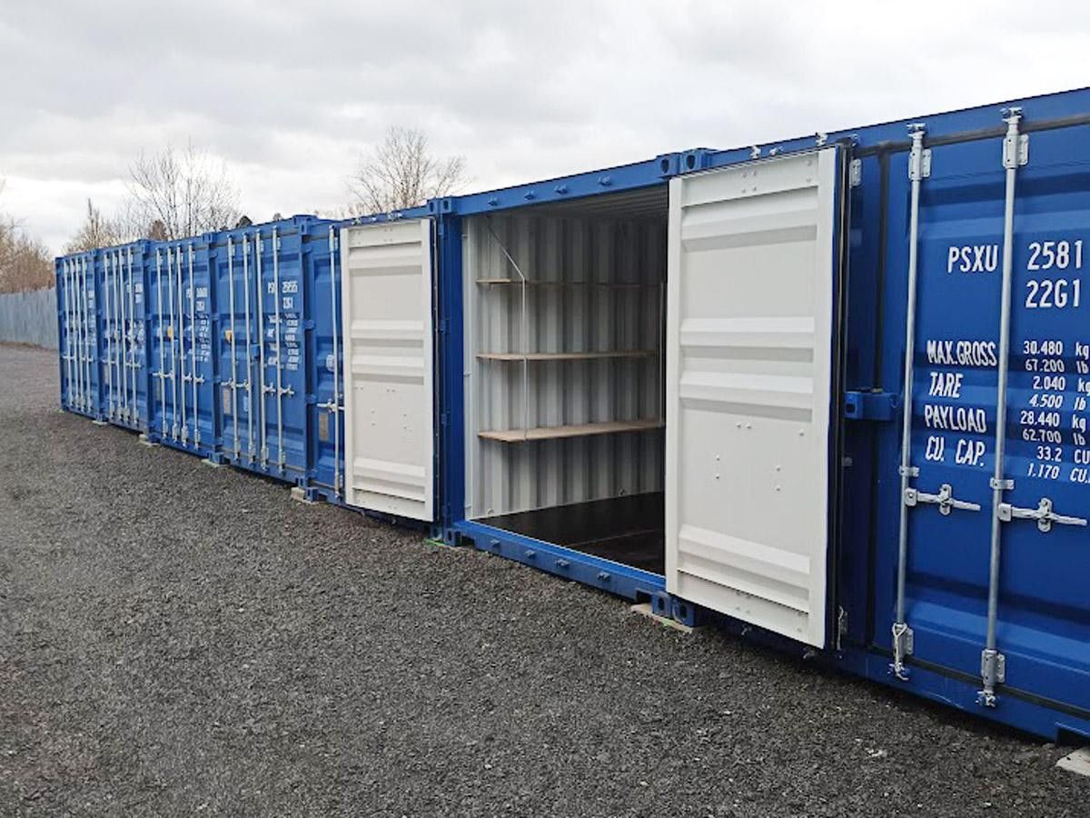 Skladovací kontejnery v areálu jsou sestaveny tak, aby tvořily uzavřený oplocený prostor.